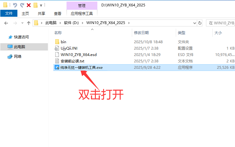 二、解压后如下图,双击 [纯净无忧一键装机工具.exe]。