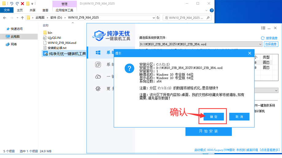 三、点击开始安装,在弹出的信息提示窗口中,点击【确定】。