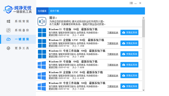 提供了 XP、Win7 (32位/64位)、Win8.1 (32位/64位)、Win10 (32位/64位)、 Win11 64位 供用户选择安装,提高了重装系统的可选择性和灵活性