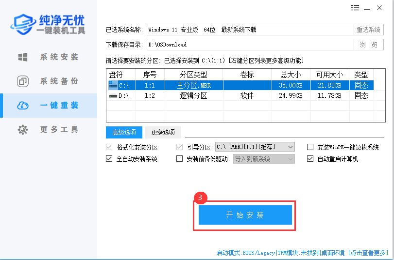 出来下图页面点击③【开始安装】。如下图所示