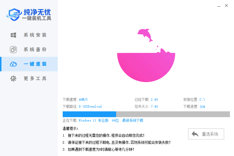 以上就是纯净无忧一键装机工具重装系统教程,有不懂的如何使用纯净无忧一键装机工具重装系统的用户,可以尝试多看几遍以上的使用教程操作看看,希望以上教程可以给大家带来更多的帮助。